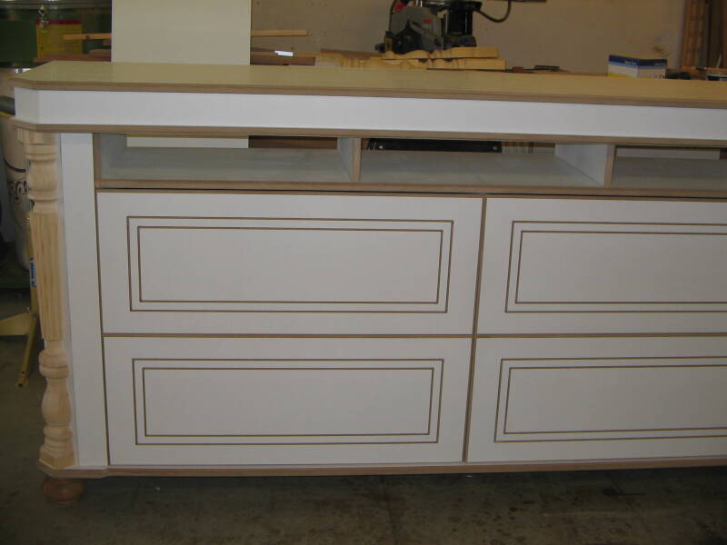 Zwevend audiomeubel met noten gefineerd bovenblad.